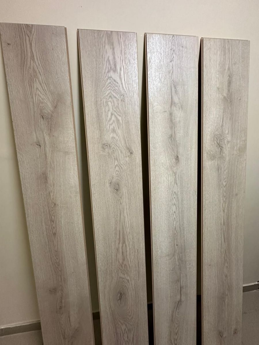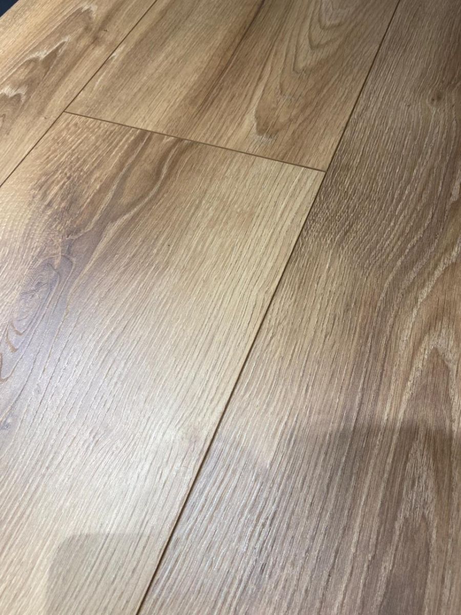 Главное преимущество этого ламината, то что он производится в Германии. И это чувствуется в деталях: плотная HDF-плита, четкие замки, стабильность при перепадах влажности. Второе — размеры досок. Длинные и широкие планки действительно создают ощущение настоящего паркета, особенно в светлом тоне. Третий плюс — внешний вид. Цвет «Дуб Лэйк бежевый» очень мягкий, спокойный, без резких контрастов. Подходит под любую мебель, и под светлую, и под темную. Четвертое - практичность. Поверхность матовая, с красивой текстурой дерева. На ней почти не видно пыли, царапин или следов от когтей кота. Плюс простая уборка с помощью влажной тряпки, ничего сложного.